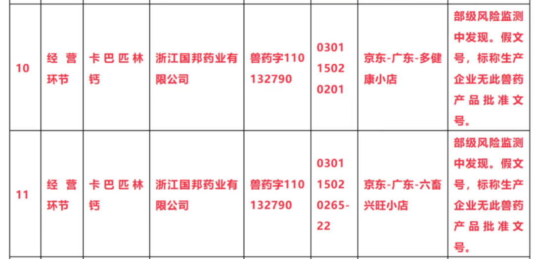 正在2025年第一期兽药质量监视抽检传递中,发觉假兽药12批次,此中省级监视抽检8批,部级风险监测4批。值得留意的是,有两批假兽药抽检自广东地域的京东-广东-多健康小店和京东-广东-家畜畅旺小店。这些网销兽药假充国内正轨兽药企业,产物核准文号经核实为虚假。